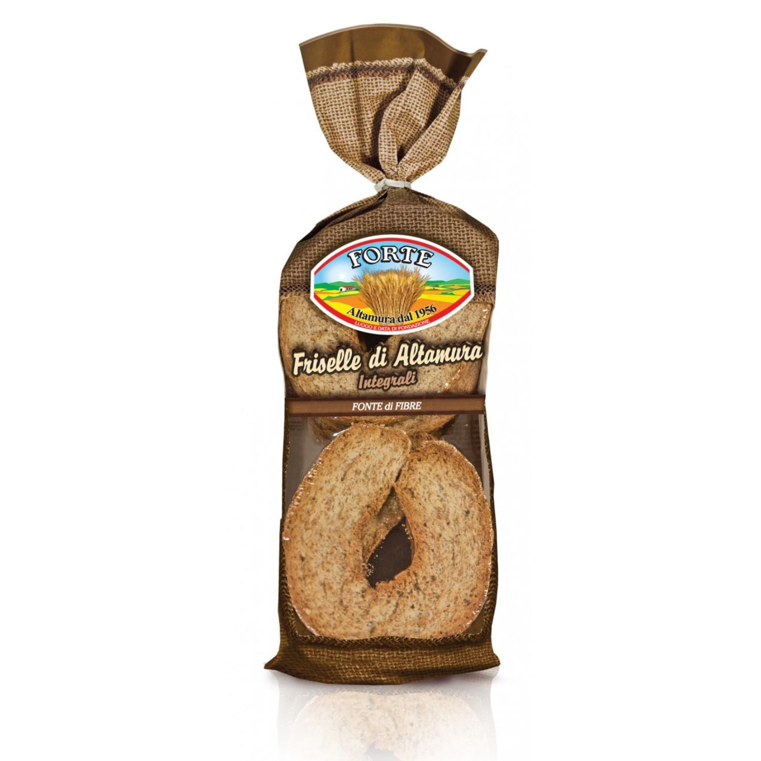 Pilngraudu Altamura friselle 350g. Sastāvdaļas: Uzturvērtība uz 100g: enerģētiskā vertība 1225 kJ / 291 kcal; tauki 4,4g, no kuriem piesātinatās taukskābes 0,9g; ogļhidrāti 47g, no kuriem cukurs 8,4g; olbaltumvielas 11g; šķiedras 9,5g; sāls 0,98g. Ieteicams līdz: skatīt uz iepakojuma. Uzglabāt sausā un vēsā vietā. Ražotājs: Oropan SpA, Itālija. Pārdevējs: Moop Sia, Dzirnavu 45, Rīga, Latvija