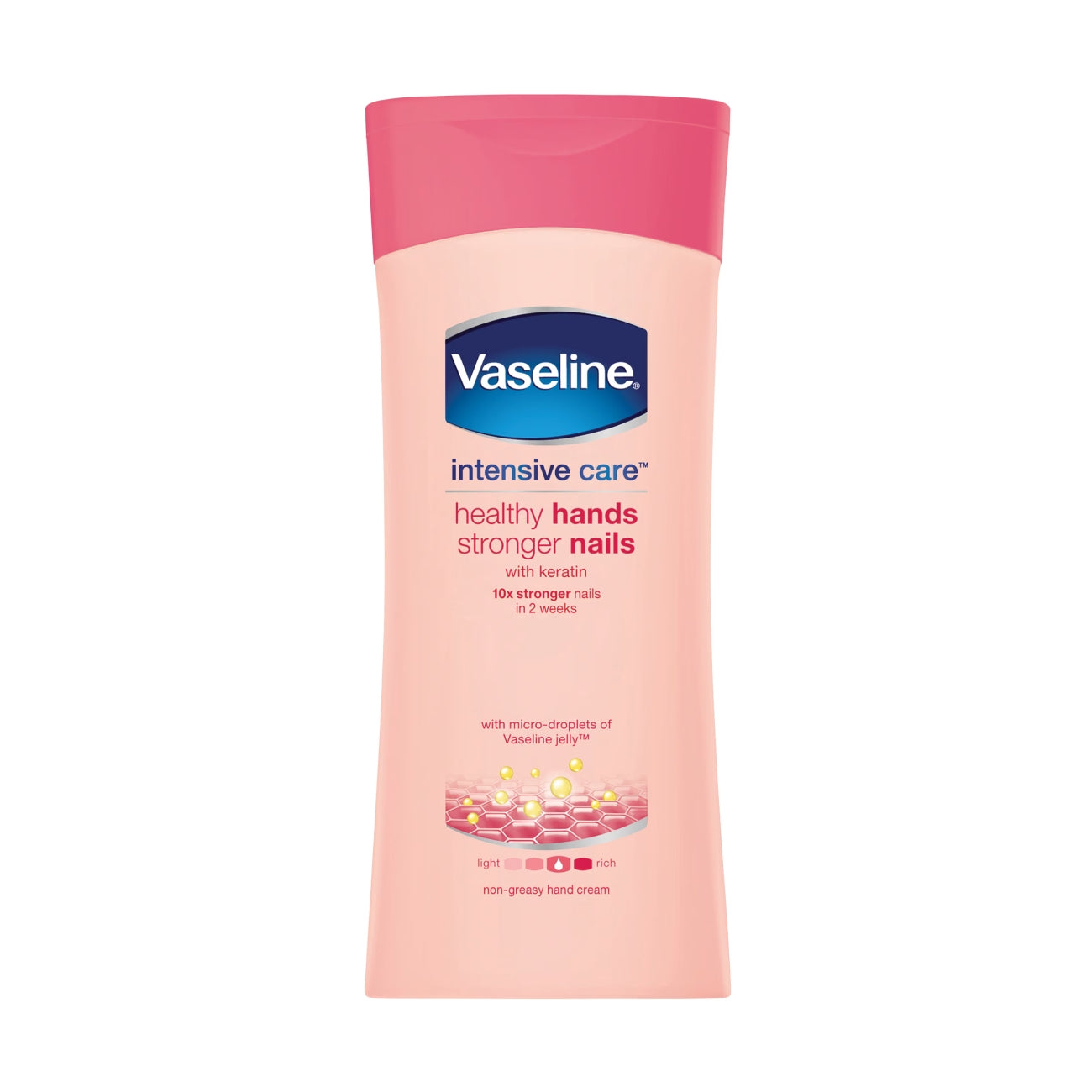 VASELINE Healthy Hands roku un nagu krēms 200 ml. Ātri iesūcas, neradot taukainu sajūtu. Ar keratīnu. Stiprina nagus, mīkstina rokas un izlīdzina kutikulas. Ieteicams līdz: skatīt uz iepakojuma. Ražotājs: Unilever, EU. Izplatītājs: Moop Sia, Dzirnavu 45, Rīga, Latvija