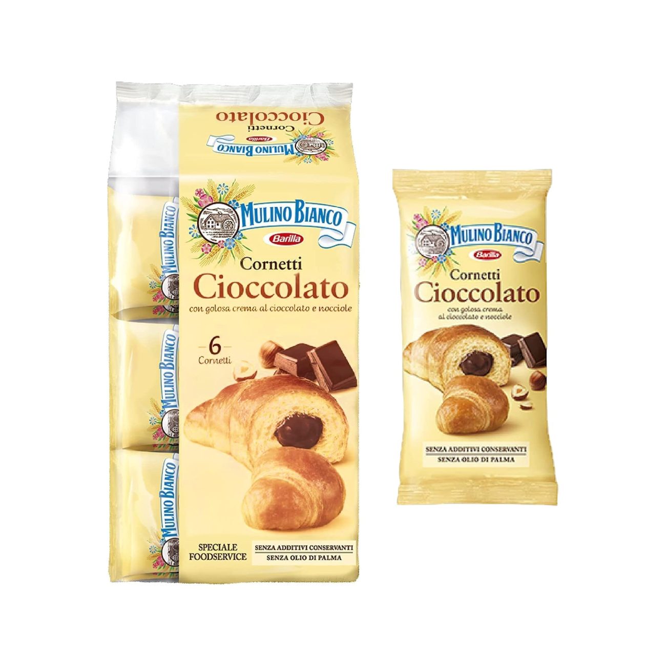 - MULINO BIANCO kruasāni ar šokolādes un lazdu riekstu krēma pildījumu