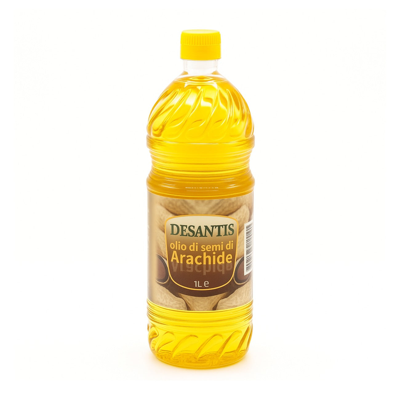 DESANTIS zemesriekstu eļļa 1,0 L. Sastāvdaļas: zemesriekstu sēklas. Alergēni: Satur ZEMESRIEKSTUS. Uzturvērtība uz 100g: enerģētiskā vertība 3389 kJ / 824 kcal; tauki 91,6g, no kuriem piesātinatās taukskābes 17,8g; mononepiesātinātie 48,1g; polinepiesātinātie 25,5g; ogļhidrāti 0g, no kuriem cukurs 0g; šķiedras: 0g; olbaltumvielas 0g; sāls 0g. Ieteicams līdz: skatīt uz iepakojuma. Uzglabāt sausā un vēsā vietā. Ražotājs: Olearia Desantis Spa, Itālija. Izplatītājs: Moop Sia, Dzirnavu 45, Rīga, Latvija